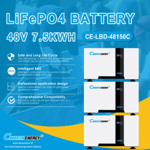 CE-LBD-48150C is a specialized mid-range energy storage unit that fills the gap between 5kWh and 10kWh systems. Providing 7.5kWh of power, it is a high-capacity wall-mounted or floor-standing lithium battery designed for users who need more than a standard 100Ah unit but don’t want the full expense of a 200Ah module.