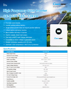 The Cworth Energy CE-H12K-TS5 is the powerhouse of the Cworth hybrid lineup. This 12kW (12,000W) inverter is designed for large-scale residential estates, commercial offices, and light industrial applications. Unlike smaller models, the TS5 is built to handle massive “surge” loads from multiple air conditioners, water pumps, and industrial machinery. It features a sophisticated dual MPPT architecture, allowing it to manage two independent arrays of solar panels for maximum energy harvest throughout the day.