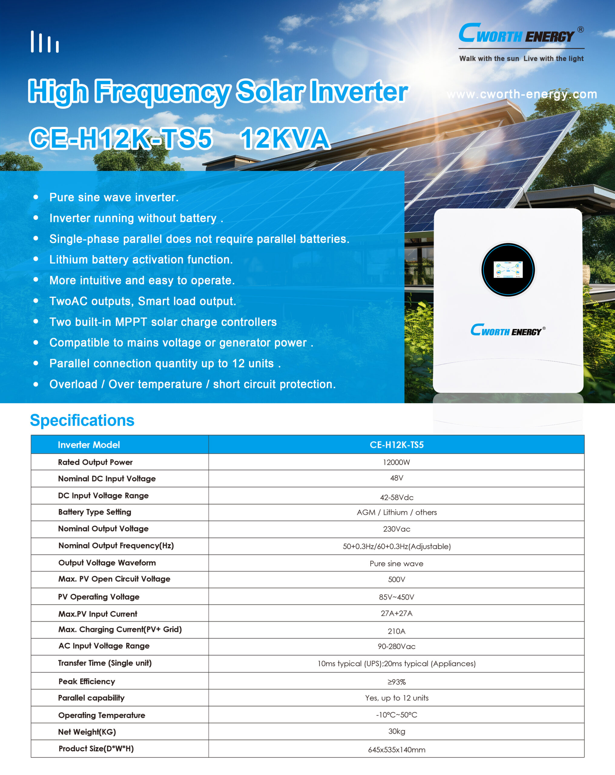 Cworth Energy CE-H12K-TS5 Hybrid Solar Inverter (12kW/48V)