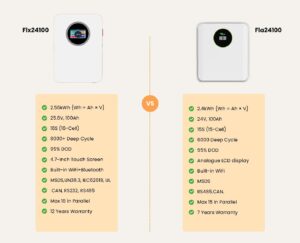 Seamless Scalability: Designed for modular growth, the FLX24100 supports the parallel configuration of up to 15 units, enabling a total system capacity of 38.4kWh to accommodate evolving energy requirements.