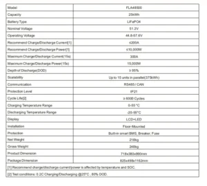 25kWh 48V 500ah LiFePO4 Battery – FLA48500